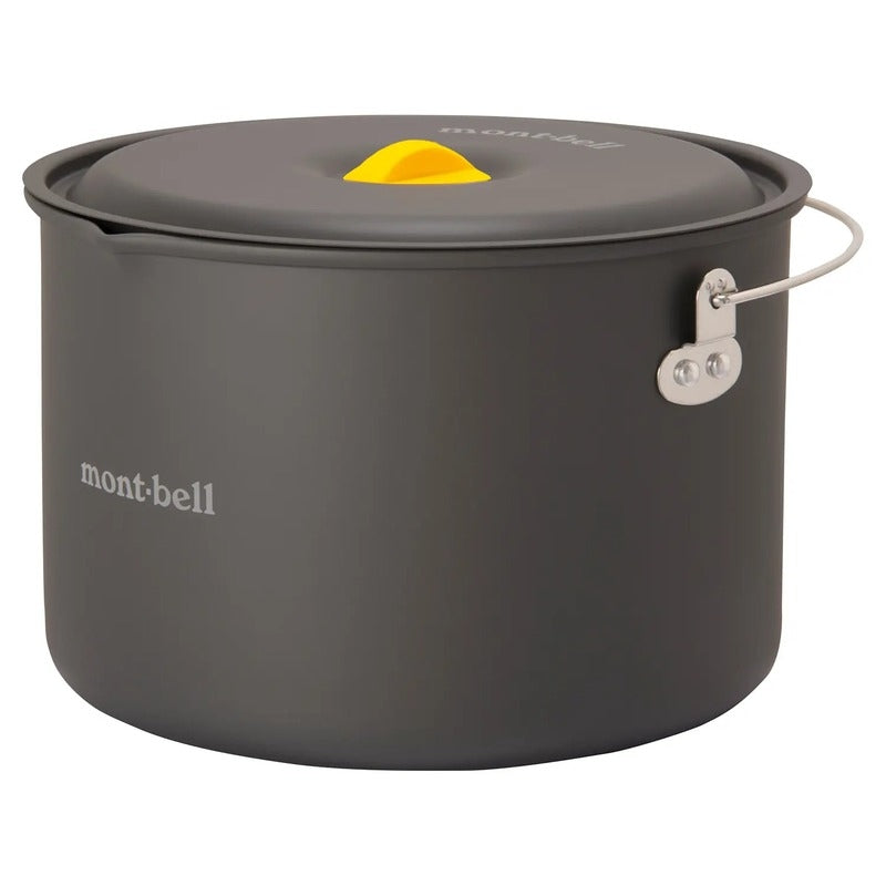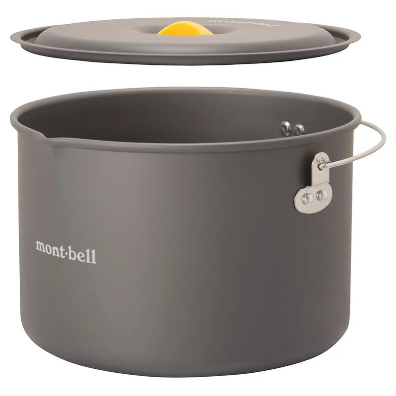 Wide-mouth aluminum cook pot with a heat resistant handle, measurement lines, pouring spout and steam vents. The included lid also features a silicon gasket on the backside which hooks onto the lip of the cook pot, acting as a lid rest.