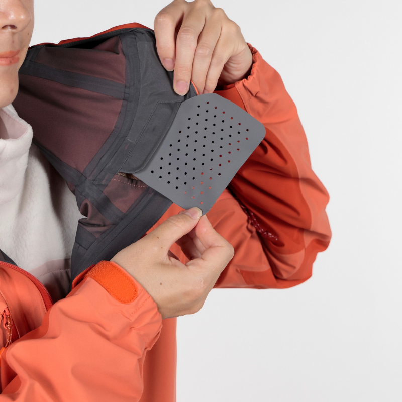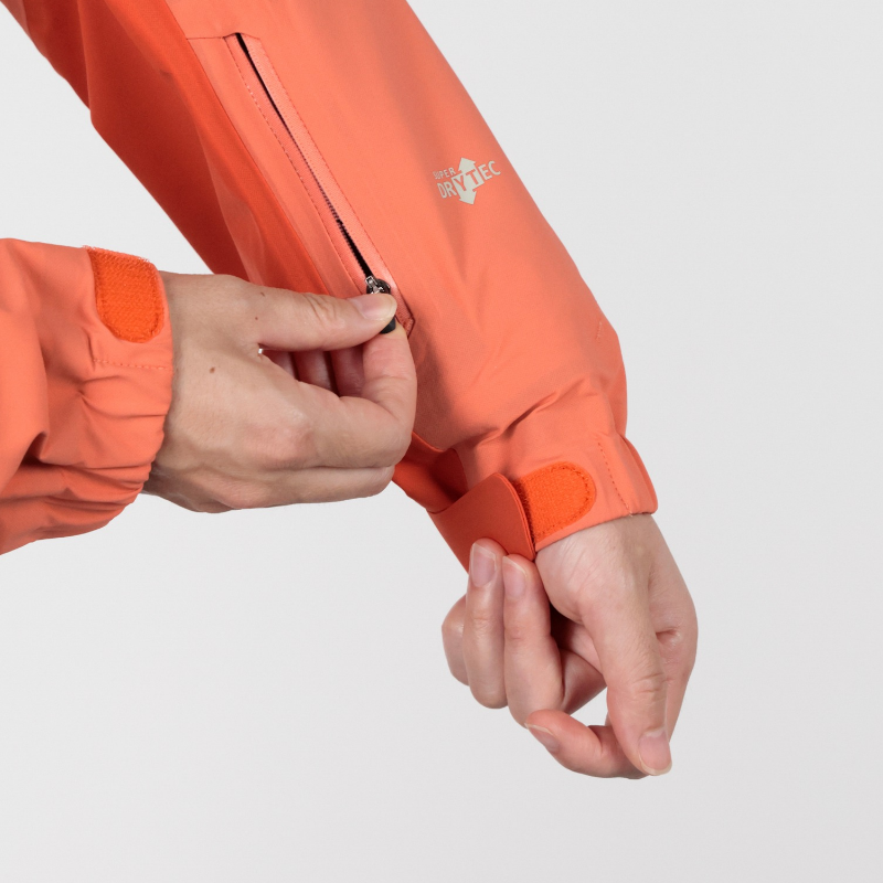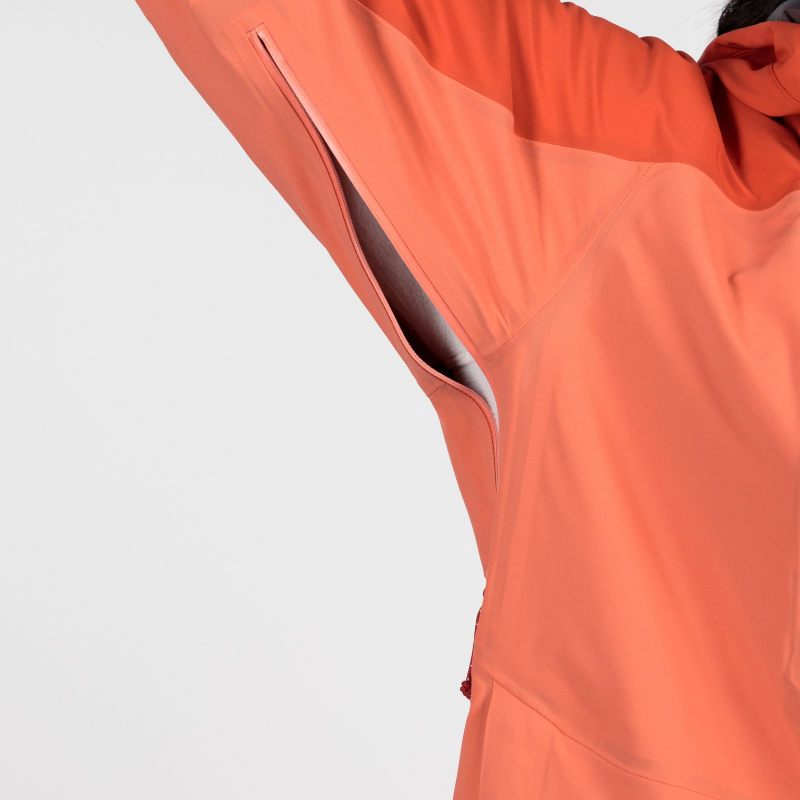• Pit zips vent heat and moisture