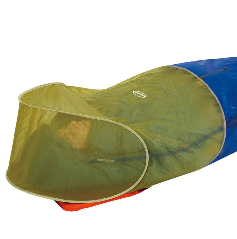 Keep the insects out and the comfort with a fine mesh to cover your sleeping bag when setting camp under a tarp or in open air. Conveniently setting up in one easy motion, a draw cord helps the mesh tighten around your bag and the compact size saves space inside your backpack.